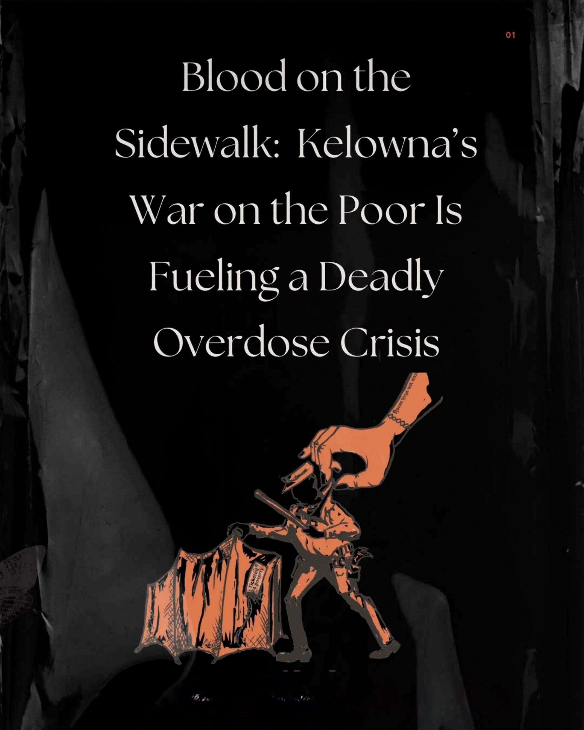 The overdose crisis is not a policy failure — it is policy. It is governance through neglect, punishment, and displacement. Kelowna’s crisis is not an anomaly; it’s the logical outcome of a system that manages poverty through policing then calls it care. Until we replace enforcement with solidarity and restore autonomy to those most impacted, the blood will keep running — down the sidewalks of this province and across every community that confuses order with justice.